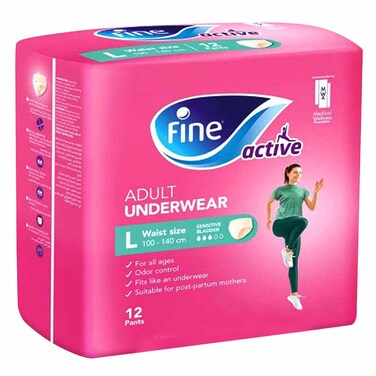 Fine Active Adult Underwear Diapers Large 12 Pieces