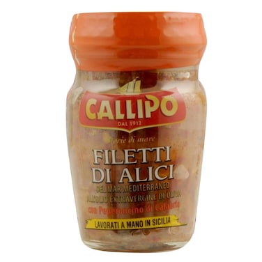 • تتميز قطع شمك الأنشوجة هذه بنكهة غنية ولذيذة، ورائحة عطرية، وقوام لحمي وعصير. إنها مثالية بمفردها لذا لا تتردد في الاستمتاع بها مباشرة من الجرة. أضفه إلى وجباتك المفضلة لإثراء وإضفاء الحيوية على الذوق. تقترن أنشوجة كاليبو بشكل مثالي مع السلطات والفطائر والمعكرونة والبيتزا.