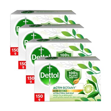 صابون ديتول أكتيف بوتاني، برائحة الشاي الأخضر والبرغموت، 150 غرام × 4