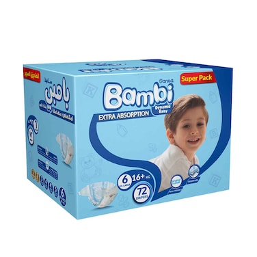سانيتا بامبي - حفاضات امتصاص فائق مقاس 6xx كبير 16+كجم 72 حفاضة