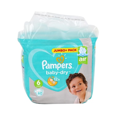 بامبرز حفاضات اطفال مقاس 6، 62قطعة