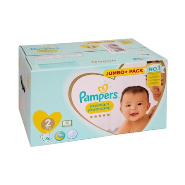 حفاضات بامبرز بريميوم حماية ، مقاس 2 ، حديثي الولادة ، 3 8 كجم ، أنعم حفاضات وأفضل حماية للبشرة ، 86 حفاضة للأطفال