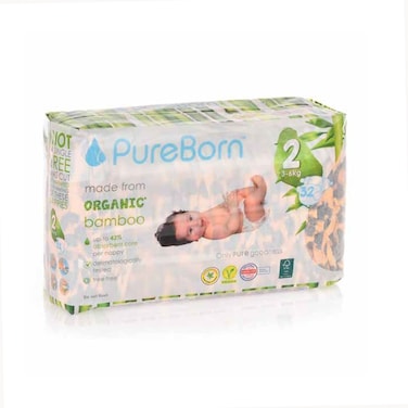 بيور بورن حفاظات عضوية من الخيزران حجم 2 3- 6 كغ 32 قطعة