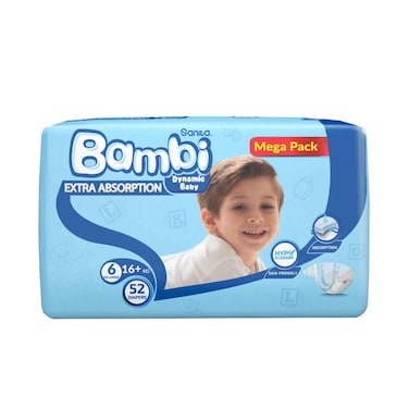حفاضات أطفال سانيتا بامبي مقاس 6 كبير جدًا 16 كجم 52 قطعة