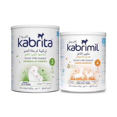كابريتا تركيبة حليب النمو من 1 إلى 3 سنوات 800 جرام + كابريميل جونيون نيوتريشن من 4 إلى 7 سنوات 400 جرام