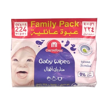 ماف كارفور مناديل مبللة للأطفال بالصبار 56 منديل، عبوة من 4 قطع