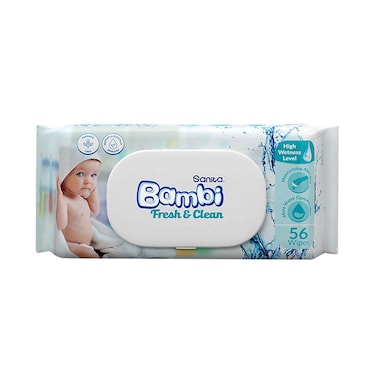 - مناديل بامبي المبللة للتنظيف اليومي ترطب وتعالج بشرة الطفل الجافة، خاصة في المناطق الملتهبة والحساسة، غنية بفيتامين E والألوفيرا.