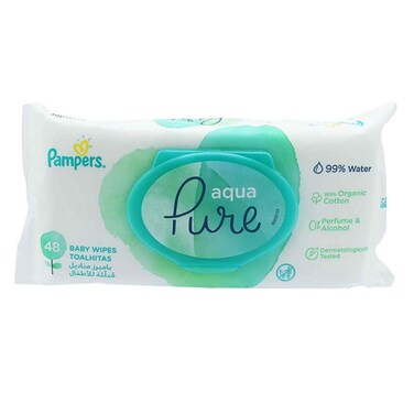 بامبرز أكوا بيور مناديل مبللة للأطفال من الماء النقي 48 قطعة