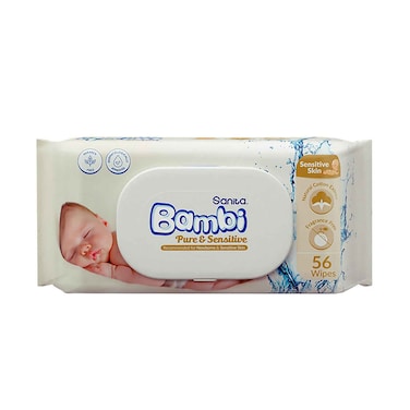 - مناديل بامبي المبللة نقية وحساسة وخالية من العطور لحماية البشرة. غنية بالصبار والمرطب النشط وفيتامين E لتغذية البشرة.