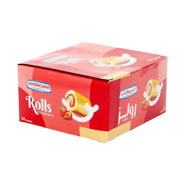 أمريكانا ميني رولز بالفراولة 20 جرام × 24 قطعة