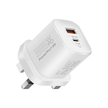 شاحن Promate GaN USB-C، شاحن حائط USB-C صغير الحجم للغاية بقدرة 33 وات لتوصيل الطاقة مع منفذ شحن سريع 22.5 وات QC 3.0، شحن ذكي متكيف وحماية الدائرة القصيرة لهاتف iPhone 15، PowerPort-33
