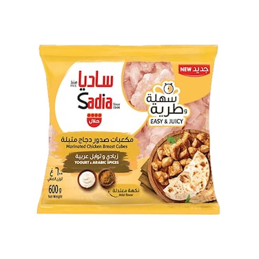 ساديا سهلة وطرية مكعبات صدور دجاج متبلة مع الزبادي والتوابل العربية 600 غرام
