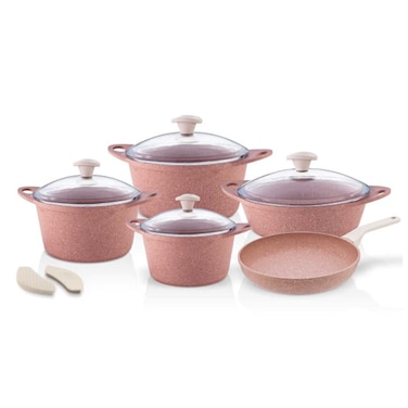 فاليز طقم طبخ غرانيت 9 لون وردي