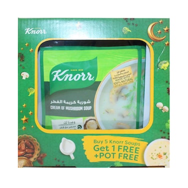 شوربة كنور، للغداء أو العشاء أو الوجبات الخفيفة، كريمة الفطر، بدون مواد حافظة مضافة، 53 جرام، عبوة من 6 + وعاء