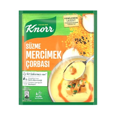 - تقدم لك شوربة العدس كنور النكهة التي لا غنى عنها للطاولات في شكلها الأكثر عملية. تعتبر شوربة العدس خيارًا مثاليًا خاصة للطلاب والموظفين، وهي مثالية لكل من يحب طعم العدس الأحمر ويريد أن يصبح جاهزًا في وقت أقصر. يعتبر Knorr Mercimek كورباسي عمليًا جدًا في التصنيع. يُضاف خليط الحساء الجاف في كل كيس إلى 1 لتر من الماء. ويترك على نار خفيفة لمدة 15 دقيقة بعد خلطه وطهيه حتى يغلي.