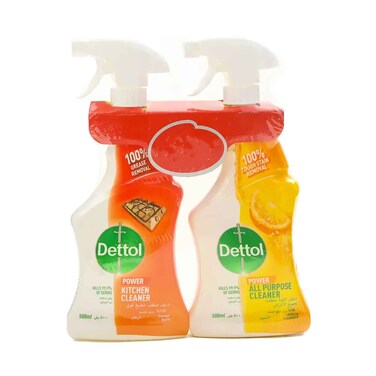بخاخ منظف ديتول متعدد الأغراض، برائحة الليمون + بخاخ منظف ديتول للمطبخ، برائحة البرتقال، 500 مل × 2