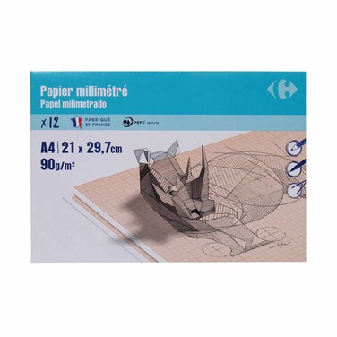ورق رسم كارفور ملليمتر 210X297 90 جرام 12 ورقة