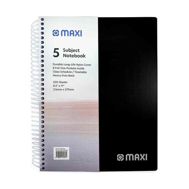 دفتر ماكسي لولبي من مادة البولي بروبيلين 5 موضوعات 9.5 بوصة × 7 بوصة
