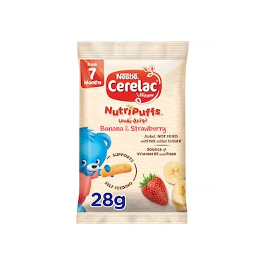 - اجعل وقت تناول الوجبات الخفيفة ممتعًا ومغذيًا مع Cerelac NutriPuffs! مخبوز غير مقلي بدون سكر أو ملح مضاف. مصدر لفيتامين B1 والألياف. صنعت خصيصا للأطفال. سهل الإمساك بالأيدي الصغيرة. تذوب في الفم آمنة للأكل للصغار