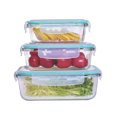 مجموعة حاويات طعام زجاجية مستطيلة من كليك لوك مكونة من 3 قطع