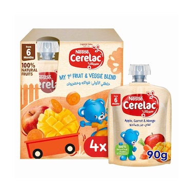 نستله سيريلاك مزيج الفواكه والخضروات الأول مع التفاح والجزر والمانجو 90 جم عبوة من 4 قطع