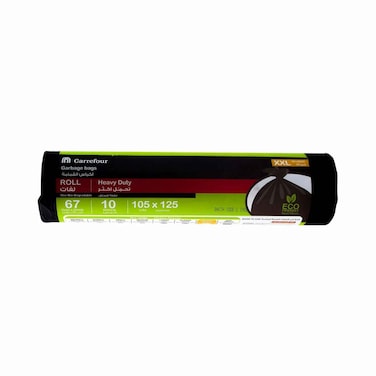 كارفور 67 جالون أوكسو رول شديد التحمل قابل للتحلل باللون الأسود XXL 10 أكياس قمامة 105 سم × 125 سم