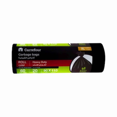 كارفور أكياس قمامة قابلة للتحلل 60 جالون XL أسود 20 كيس قمامة 90 سم × 110 سم