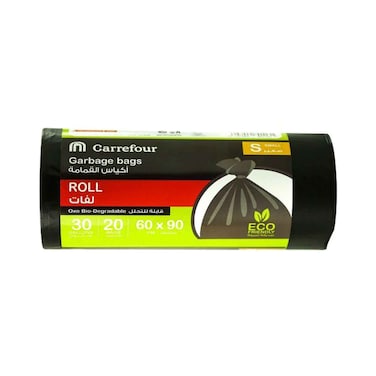 كارفور أكياس نفايات قابلة للتحلل 30 جالون أسود صغير 20 كيس 60 سم × 90 سم