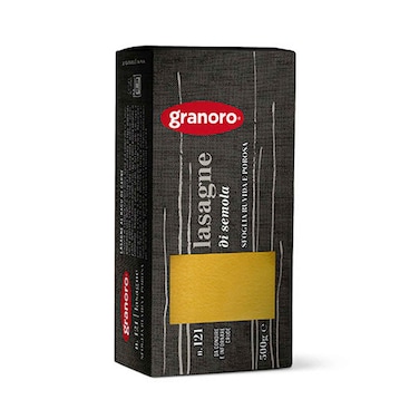 - تعتبر أوراق المعكرونة من غرانورو لازانيا مثالية لأي لازانيا قائمة على اللحوم أو الخضار. معكرونة غرانورو هي رائحتها، وسمكها المثالي، ولونها الأصفر القوي، والنكهة الرقيقة، والمرونة والاتساق بعد الطهي.