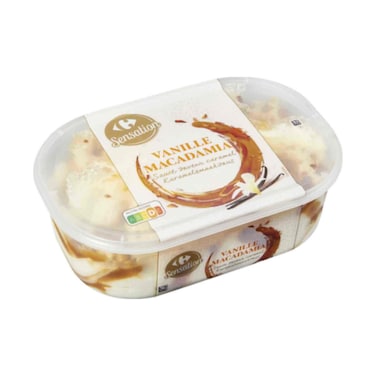 كارفور آيس كريم مجمد بالفانيليا والمكاديميا بالكراميل 484 جرام