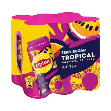 ليبتون شاي مثلج استوائي خالي من السكر مع الباشن فروت والمانجو 320 مل × 6 قطع
