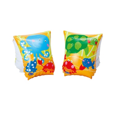 Made from non-porous vinyl that resists air and water leakages. Helps kids learn to swim with the easy-to-use armbands. Designed with colourful illustrations for fun and attractive play. Features two air chambers for added safety. Ties around the arms easily without hurting