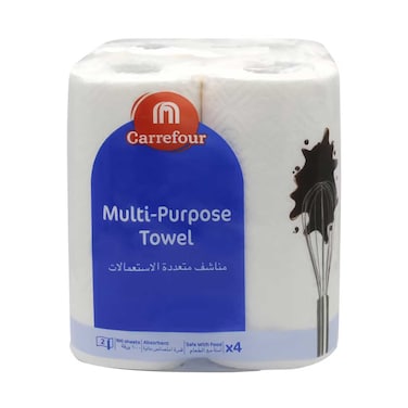 ماف كارفور مناشف متعددة الأغراض طبقتين 100 قطعة 4 رول