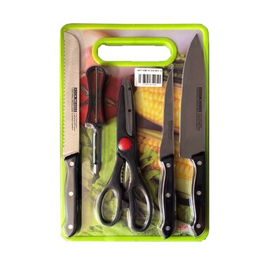 Happy Home Kitchen Knife Set, Koch Messer, 5pc Set 4 knives 1 sharpening stick. 1 Chopping Board.