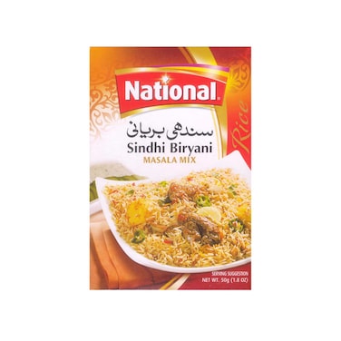 - يعتبر مزيج البرياني السندي الوطني هذا سهل التحضير رائعًا للأسلوب السندي الحار والحار. ما عليك سوى اتباع الوصفة الموجودة على ظهر العلبة للحصول على وجبة لذيذة تستمتع بها عائلتك بأكملها! يُزين بالبصل المقلي.