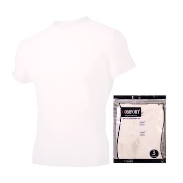 كومفورت تيشيرت بأكمام قصيرة، عبوة من 3 قطع مقاس XL أبيض (لا يمكن استرداد الأموال/استبدال السلعة الصحية)