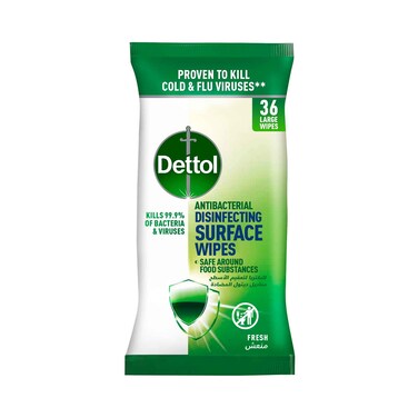 ديتول مناديل مبللة مطهرة للأسطح مضادة للبكتيريا، 36 منديل