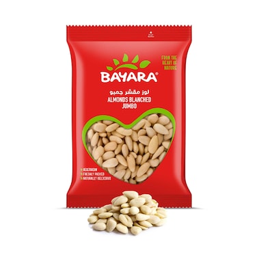 • أضف لمسة من التغذية إلى نمط حياتك مع لوز بايارا مقشر, يمكنك تناول هذه اللوز بمفرده أو حتى مع حبوب الإفطار اليومية.