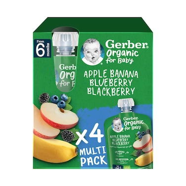 جربر التفاح العضوي والموز والتوت والتوت الأسود من 6 أشهر 90 جرام (عبوة من 4 قطع).