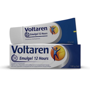 - فولتارين ايملجل 12 ساعة هو جل غير دهني يخترق الجلد بسرعة ليوفر تخفيفًا سريعًا وطويل الأمد للألم. يخفف الألم والالتهاب والتورم الناتج عن إصابات العضلات والمفاصل والأنسجة الرخوة والروماتيزم (التهاب الأوتار) وآلام التهاب المفاصل. يحتوي جل فولتارين 12H على عقار ديكلوفيناك المضاد للالتهاب غير الستيرويدي. على عكس المواد الهلامية المبردة واللصقات الحرارية التي تعمل فقط من خلال العمل البدني (تبريد أو تسخين الجلد)، يعمل ديكلوفيناك عن طريق تخفيف الألم وتقليل الالتهاب في المصدر. يخترق ديكلوفيناك الموضعي عمق الجلد ويستهدف توصيله مباشرة إلى الأنسجة المصابة الموجودة أسفل المنطقة المعالجة. بالمقارنة مع فولتارين إيملجل، يحتوي فولتارين 12H جل على ضعف تركيز العنصر النشط ديكلوفيناك ثنائي إيثيل أمين.