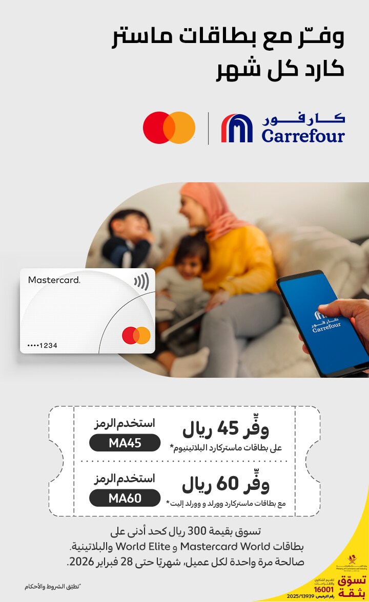احصل على خصم يصل إلى 60 ريال قطري شهريًا عند استخدام ماستركارد.
