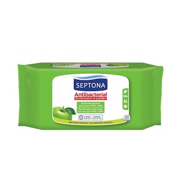 سيبتونا مناديل مبللة لليدين مضادة للبكتيريا بالتفاح الأخضر 60 قطعة