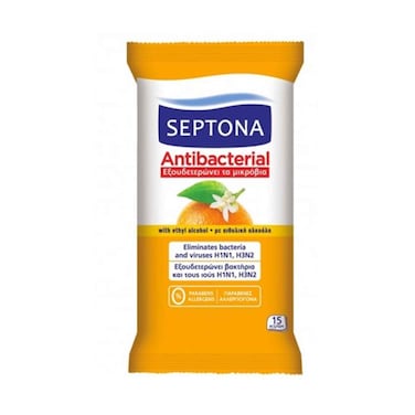 سيبتونا مناديل مضادة للبكتيريا بالكحول الإيثيلي بالبرتقال 15 منديل