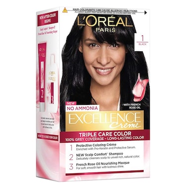 لوريال باريس صبغة الشعر المتميزة عناية ثلاثية اللون 1 أسود