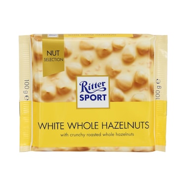 - ريتر سبورت الشوكولاتة البيضاء مع البندق الكامل تقدم تشكيلتنا الملونة الأناقة منذ عام 1990 لأنها شيء مميز للغاية , نصنعها من حبوب الكاكاو في غرب إفريقيا و لكن بدلاً من استخدام كتلة الكاكاو فقط نأخذها بنسبة 27 في المائة من أجود زبدة الكاكاو و نضيف مسحوق الحليب الممتاز وقليل من الفانيليا . كل هذا يجعل الشوكولاتة البيضاء ريتر سبورت مع البندق الكامل شوكولاتة يمكن أن تحمل اسمها بكل فخر. قبل كل شيء هناك الكثير من الأعمال اليدوية حيث يتم اختيار البندق التركي الخاص بنا بشكل فردي وفرزه يدويًا.