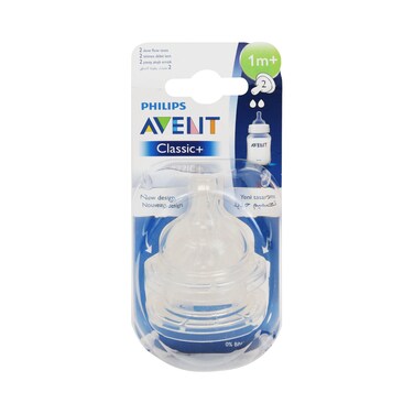 حلمات بطيئة التدفق تم تصميم الصمام المضاد للمغص الذي نقدّمه لمنع الهواء من الدخول إلى معدة طفلك وتخفيف المغص والانزعاج. ففيما يقوم طفلك بتناول الطعام من الرضّاعة، ينثني الصمام المدمج في الحلمة ليسمح بدخول الهواء إلى الرضّاعة ومنع تشكل فراغ هوائي، ويطرد الهواء باتجاه أسفل الرضّاعة، فيحتبس الهواء في الرضّاعة ويمنعه من التسلل إلى معدة الطفل، مما يساعد في تخفيف المغص والانزعاج. إن رضّاعة فيليبس أفينت المضادة للمغص تخفف الاضطراب. فيختبر الأطفال الذين يتناولون الطعام بواسطة رضّاعة فيليبس أفينت المضادة للمغص مستوى اضطراب أقل في الليل بنسبة 60% مقارنة بالأطفال الذين يتناولون الطعام بواسطة رضّاعة مضادة للمغص من علامة تجارية منافسة.* يسمح شكل الحلمة بالتقام آمن ويساعد ملمسها المضلّع في منع الانقباض لرضاعة متواصلة ومريحة.