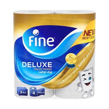 ورق تواليت فاين ديلوكس سميك بشكل فاخر 3 طبقات 4 رول