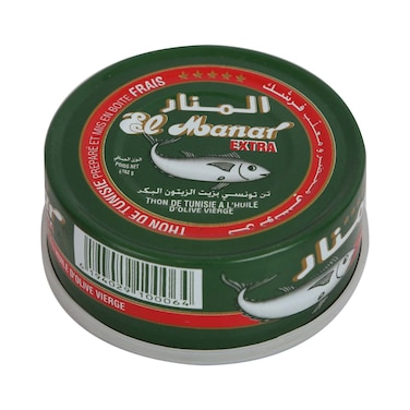 المنار تونة كاملة ممتازة بزيت زيتون بكر 162غ