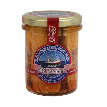 المنار شرائح تونة بالطماطم المجففة بالشمس في زيت زيتون بكر 200غ