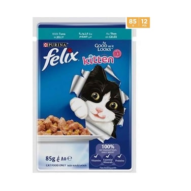 بورينا فيليكس قطط صغيرة مع التونا في الجيلي 85 جرام × 12 قطعة